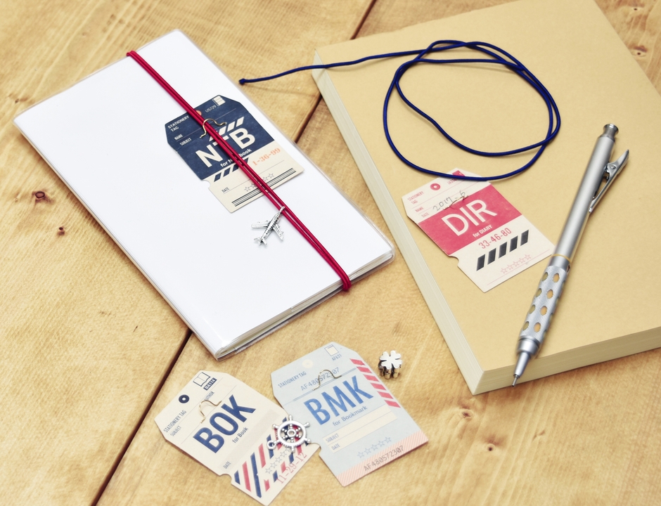 旅行用の手帳や、旅の思い出ノートはもちろん、普段の手帳やノートに貼って使えるブックバンドタグシール。タグ部分には付けはじめ付け終わりの日付をメモ!