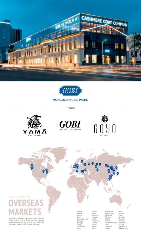 近年、インターネット上では中国製の安価なカシミヤ製品が出回っていますが、それらとは比べものにならない上品なツヤと極上の肌触り。デパートや高級セレクトショップで扱っている高価なカシミヤ製品と比べても同レベルです。それはそのはず。ヨーロッパやアメリカを中心に世界のカシミヤブランドへカシミヤ原毛を提供しているのは、この「GOBI CASHMERE(ゴビカシミヤ)」なのです。(全てのカシミヤブランドへ提供しているわけではありません)