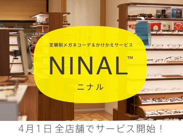 「ニナル」は月額2,100円から始められる定額制メガネコーディネート&かけかえサービスです。数百種類のメガネ・サングラス中から、視力の変化、ファッション嗜好(しこう)の変化などに合わせて、かけかえることが可能。お客様は、メガネかサングラスのいずれか1本を使うことができ、3年間の契約期間の中で、フレーム3本・レンズ3組まで交換できます。フレームはすべて新品を提供し、レンズはお客様の視力に合わせ毎回お作りします。(※先行実施ではメガネ・サングラスで合計300種類・順次拡大予定)