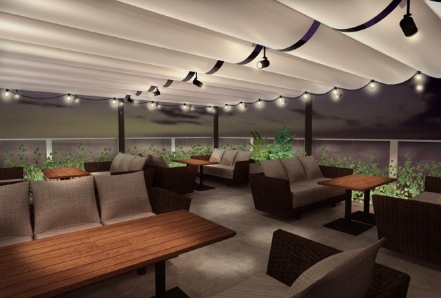 コンセプトに、『大人のお洒落な都心ビアガーデン』を柱とし、店内は都心リゾートも演出。テラス席では、名駅摩天楼をバックに、食事を楽しんでいただけます。また、店内フロアー席には夜景が見える大きなガラス窓があり、それに特殊加工を施し映像が映し出され『宇宙空間と夜景のコラボレーション』や『名駅摩天楼と花火のコラボレーション』といった異次元空間を演出する企画も展開します。