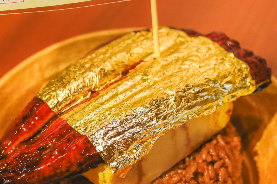 ふっくら厚みがあって、食べごたえ抜群の鰻は金箔の効果で、スタミナも金運もうなぎのぼりに上昇!?