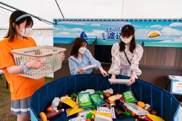 しかし、材料が他の飲食ブースのものと混ざっちゃったとのことで、ヨキソバの材料の仕分けをお手伝いします。人参たまねぎじゃがいもなど簡単に見分けられるものから、見た目そっくりなカットキャベツとカットレタスまで。曜ちゃんの掛け声にあわせて、ばんばんカゴにぶち込んでいきます。
