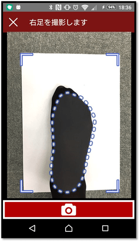 2.A4用紙をご用意していただき、その上に足を乗せカメラ機能を使って撮影を行います。