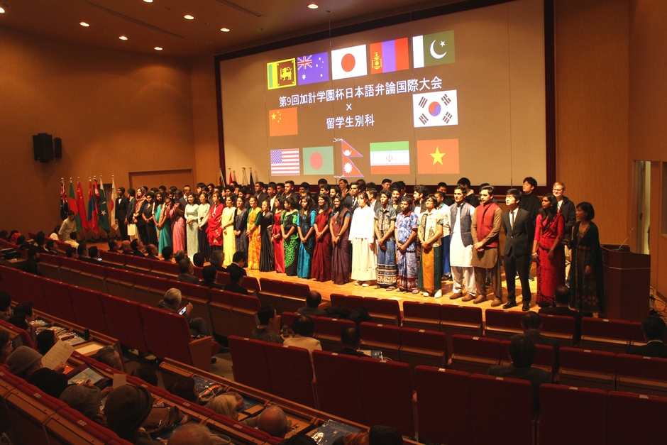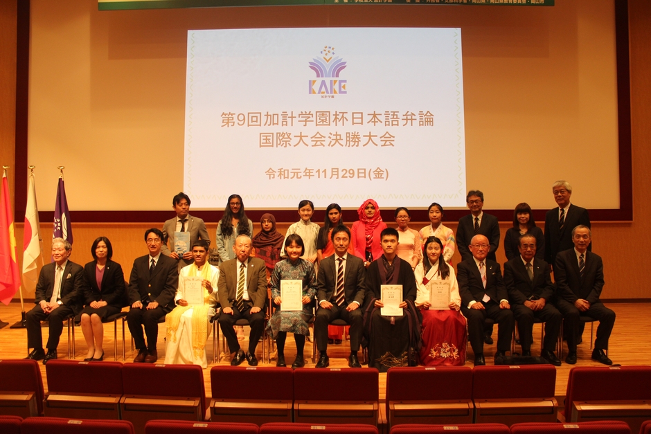 第9回加計学園杯日本語弁論国際大会決勝大会(加計学園主催、外務省、文部科学省、岡山県、岡山県教委、岡山市後援)が2019年11月29日、岡山市北区の岡山理科大学理大ホールで開催され、9カ国11地区の予選を勝ち抜いた11人が、「オリンピックがもたらすもの」をテーマに日本語能力や弁論内容を競いました。