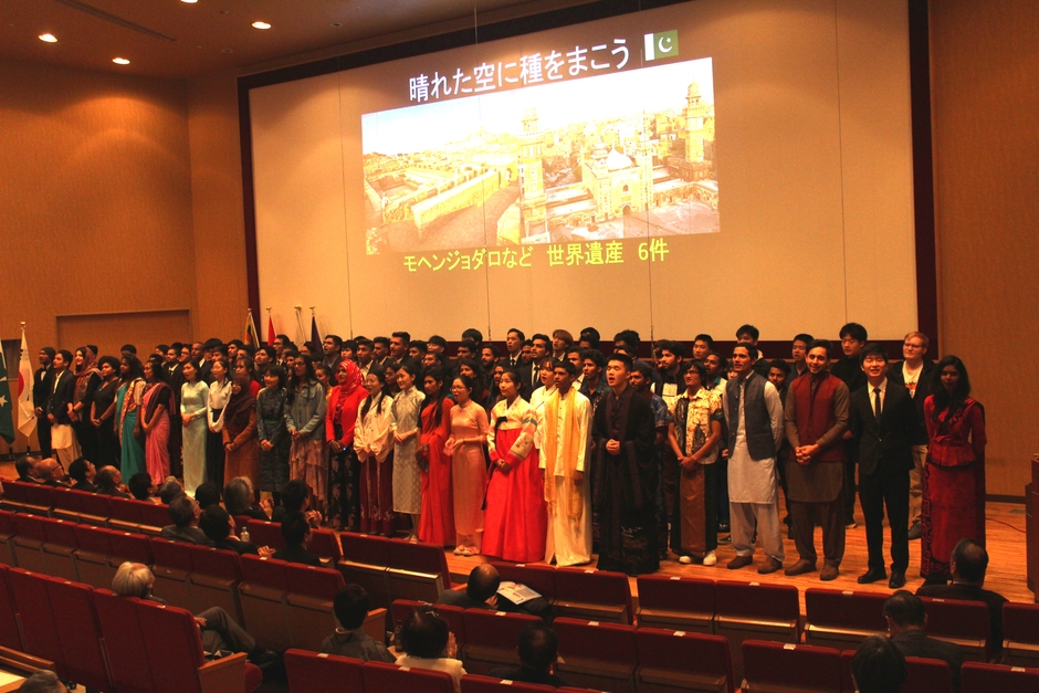 アトラクションでは倉敷芸術科学大学と岡山理科大学の留学生別科の学生約100人が、東京五輪公認応援ソングの「パプリカ」や加計学園歌を熱唱し、盛り上がりました。大会の地区予選には2000人を超える応募者があり、年々出場者の日本語弁論レベルが上がっています。
