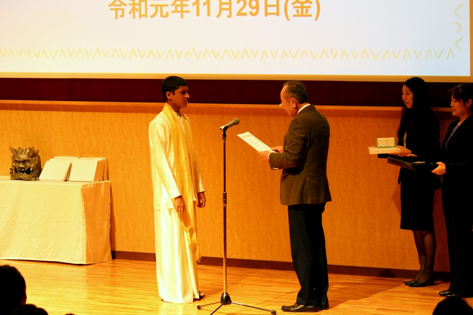 準優勝はスリランカのサハン・ヒロシ・ウィクラマスンダラさん、審査員特別賞(3位)は中国(重慶)のシ・コウキさん、今大会で初めて設けられた今治市長賞(4位)には中国(北京)のソン・ダクさんが入りました。
