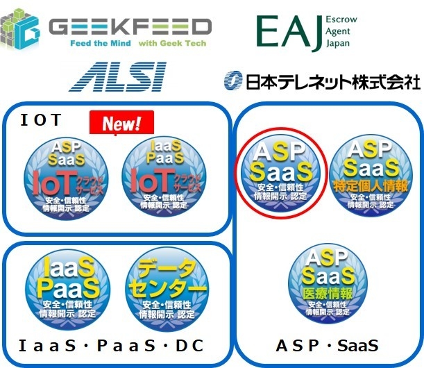 一般社団法人 ASP・SaaS・AI・IoT クラウド産業協会(ASPIC)は、2021年11月22日、クラウドサービスの安全・信頼性に係る情報開示認定機関として、申請された下記4件のクラウドサービスについて審査した結果、認定機関の定める審査基準に従って「安全・信頼性に係る情報開示」が適切に行われていることを認定いたしました。