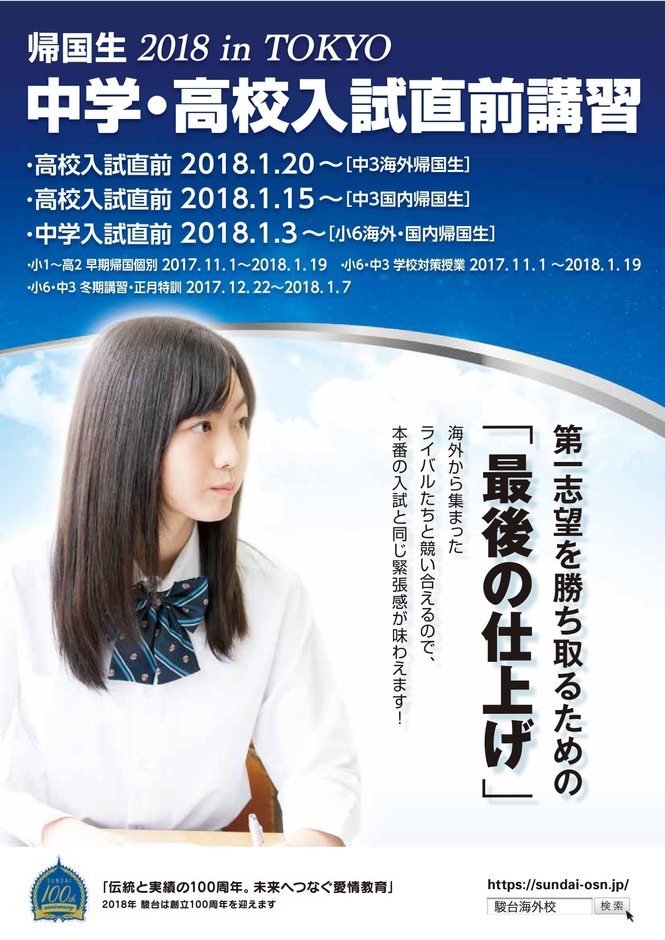駿台、帰国生対象 2018中学・高校入試直前講習の開催