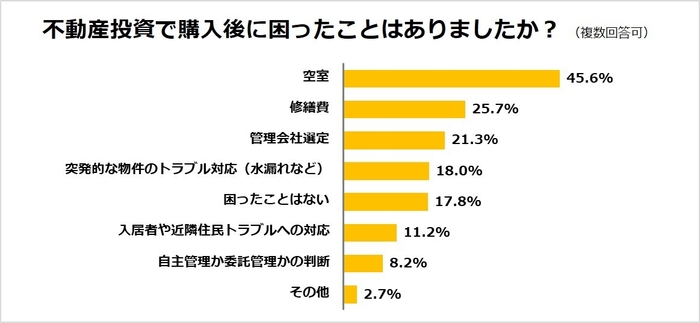 不動産投資家の半数近く(45.6%)が 購入後に「空室」で困った経験があると回答