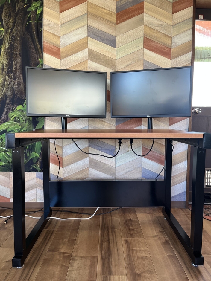 フレーム本体・天板・3口コンセント・USB付きコンセント・モニターアーム・六角レンチ・映像用HDMIケーブル・モニターディスプレイ用電源延長ケーブル