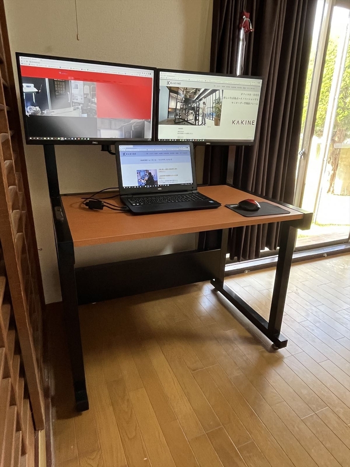 創業から15年となり、現在は多くのお客様のご支援の下、順調に業績を伸ばしております。一方で、自社の加工技術を生かした製品を作るために試行錯誤を行ってきました。その中で誕生したのが「KAKINE」です。「KAKINE」は、古くから日本の庭や敷地との境界などにあった「垣根」をコンセプトにした家具です。この家具は、当社が培った高度な3D加工技術を活用し、精巧で曲線の美しい、強度ある鉄製のフレーム構造体で構成しています。これによって、パソコン作業をする際に煩雑になるケーブル類をフレーム内にまとめ、複数のモニターをフレームアームに設置することが可能に。従来のデスクと異なり、適度なプライベート感・没入感を持ちつつ、すっきりとしたテーブルまわりを確保します。「KAKINE」のコンセプト「垣根」のように、隣人とのほどよい距離感を実現しました。このKAKINEの金属フレーム構造は特許取得(特許7002715および71947843)しており、今後の多様性のある働き方を意識した新しいオフィス家具として誕生しました。
