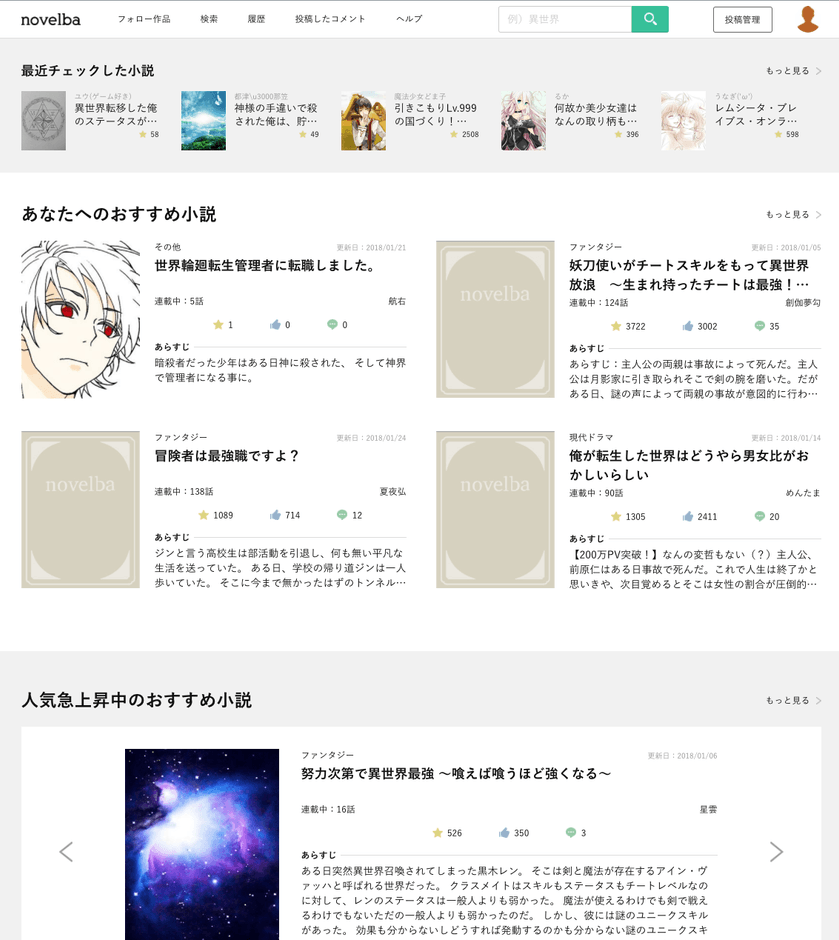 2015年12月に小説閲覧アプリとしてスタートした「ノベルバ」がウェブでも利用できるようになりました。「ノベルバ」では小説を読むだけでなく、自作小説をアプリ・ウェブの両方で公開出来ます。