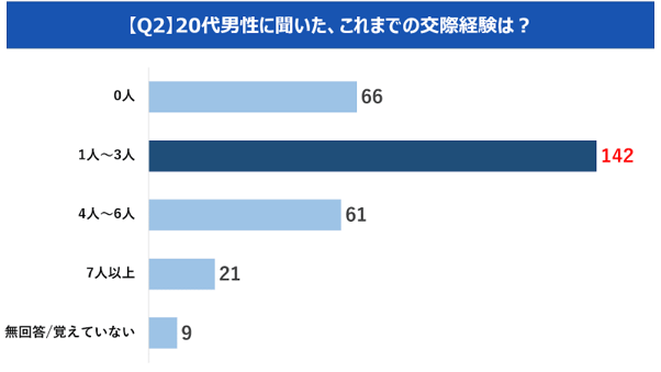 調査2|20代男性の交際経験でもっとも多いのは「1人~3人」