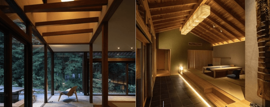 鳥がさえずる静かな山間に現れる四棟の和建築「一棟貸し 離れ紫葉-SHIYO-」は、行く人も思わず足を留めるような印象的な佇まいです。いずれも和モダンの個性的な間取りで、100平米からの広さを誇りながら、木の香りとぬくもりが、まるで自分の別荘に帰ってきたような、懐かしささえ感じさせる空間です。