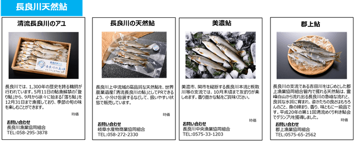 「清流長良川の恵みの逸品」等をオンラインで購入できるウェブサイトをご紹介
