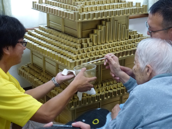 また、天守閣の模型に金色が一部塗られていない部分に、最後のひと塗りを代表としておこなった、9月24日で91歳を迎える入居者は「天守閣に行ったことがないので夢のよう」と感想を述べました。