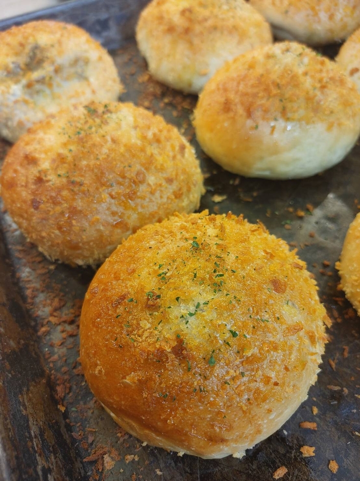 今回限定の<焼きステーキカレーパン>は、スパイシーで大人の味付けです。ステーキが3枚入っており、一口目で大きなお肉にたどり着きます。こちらを<揚げずに窯で“焼き”>、ひと味違った「ステーキカレーパン」を提供させて頂きます。二俣川店・南町田グランベリーパーク店で販売している<ステーキカレーパン>とはまた違った食感と、揚げないことで食べごたえはありながらも通常よりカロリーを抑えて食べやすいカレーパンになっています。