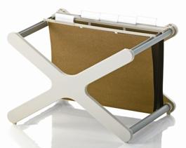 斬新なX字のフレームとアルミパイプによる、組み立て式の書類収納ケース。