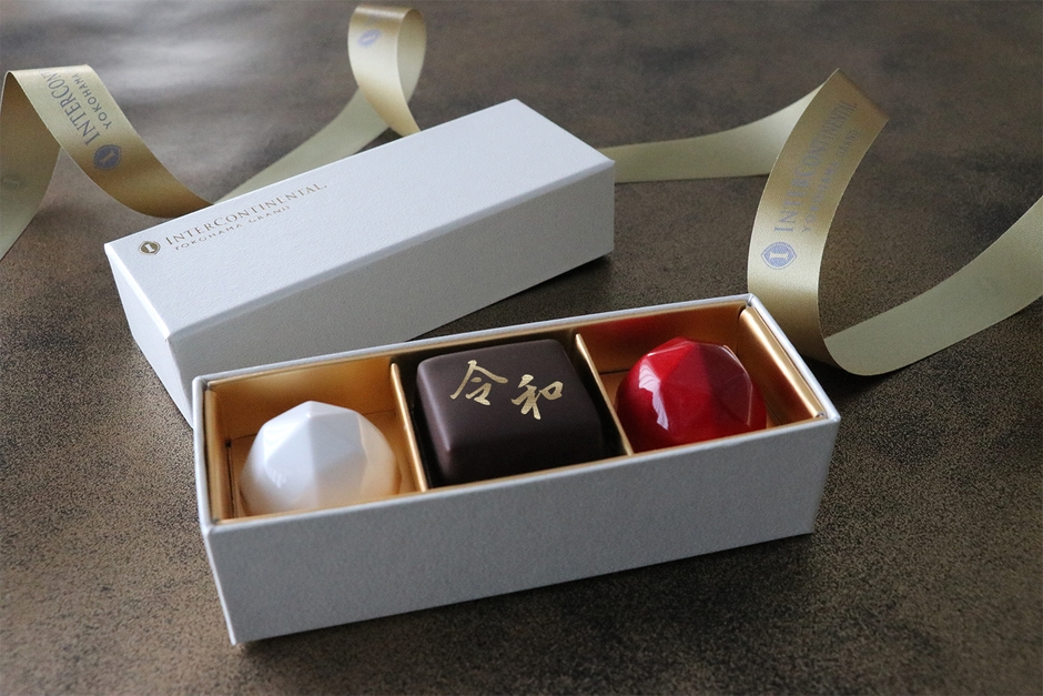ホテルのショコラティエが作る新元号特別バージョンのチョコレートを販売。改元を祝し、新元号「令和」を印字したチョコレートと和テイストの紅白チョコレートを詰め合わせました。