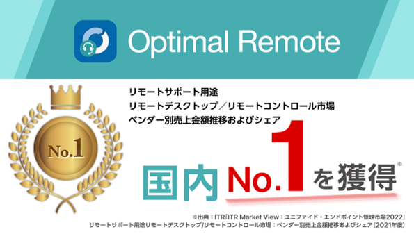 リモートサポートサービス「Optimal Remote」、 「リモートサポート用途リモートデスクトップ/ リモートコントロール市場」 ベンダー別売上金額およびシェアNo.1を獲得