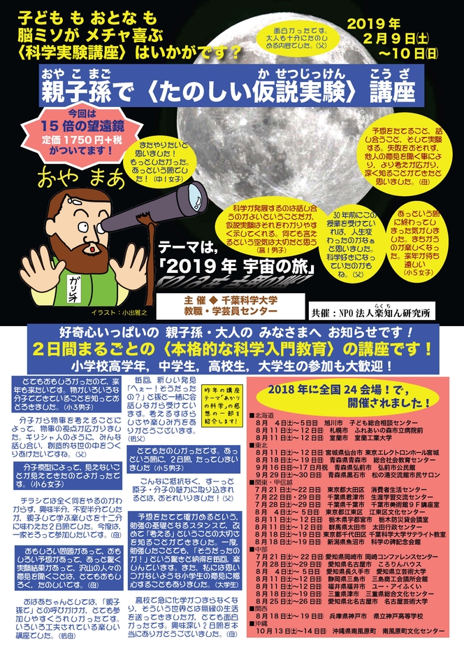 千葉科学大学から好奇心いっぱいの親子孫・大人の皆様へお知らせ! 2019年2月9・10日、「親子孫で<たのしい仮説実験>」講座