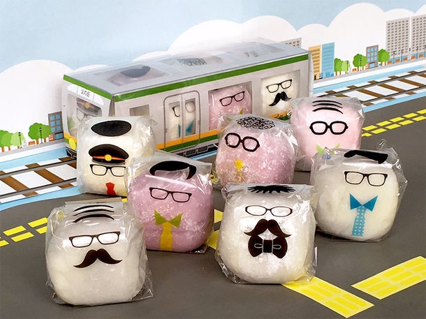 通勤電車をイメージしたパッケージに大福のお父さんを詰め込んだギフトセット。個包装の背面には「今日もお仕事お疲れさま♪」などのメッセージも入っています。大福は甘さ控えめな北海道産あずきを使用したクリーム入り夢福餅と、口当たりなめらかな紫いも餡とコクのあるクリームを入れた紅福餅の2種類。