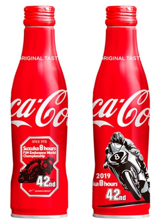 来場の上アンケートに答えた方、先着100名様に、限定品の「コカ・コーラ」スリムボトル鈴鹿8耐オリジナルデザイン(250ml)をプレゼント。アルミニウム素材のキンキンに冷たい感触と、「コカ・コーラ」の象徴であるコンツアーボトル(ガラス製ボトル)を受け継いだスタイリッシュな形状で、格別の飲み心地を提供するプレミアムパッケージです。