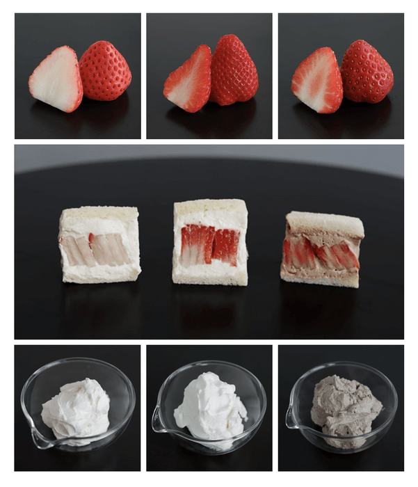 通常のフルーツサンドと異なり、カスタマイズのオーダーをいただいてから、その場で手作りして提供します。新鮮ないちごをみずみずしいままで、冷たいフルーツとクリームを冷たいままで。作り置きを一切しない、その時、その場所だから楽しめる、ライブ感を、心を込めて大切にお作りします。フレッシュ感あふれるフルーツサンドをご賞味いただけます。