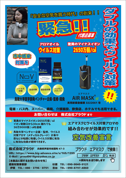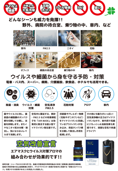 ウイルス感染症に備えて「安全な空気を買う時代」の到来 エアマスク&メディカルアロマシールドを新発売! ~販売代理店 緊急募集 限定50社~