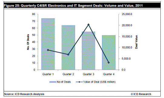 C4ISRエレクトロニクス・IT部門では、2011年に10億米ドル以上の資本取引が2件ありました。