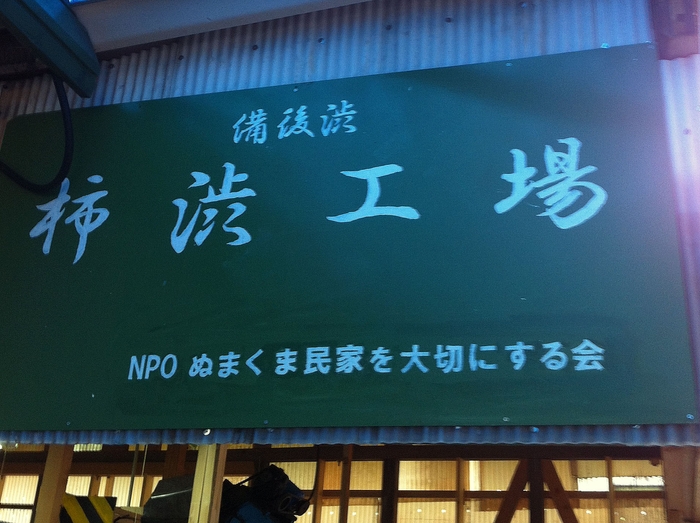 かつて備後地方の特産であった柿渋(備後渋)は、柱や床の防腐や防水、防虫に効果があり、最盛期には200社余りの柿渋屋があったといわれています。柿渋屋は時代の流れにより次々をその姿を消し、備後地域で操業を続けていた最後の柿渋工場の閉鎖を聞き、ぬまくま民家を大切にする会は工場を譲り受け、2013年8月「備後渋 柿渋工場」として操業を開始しました。
