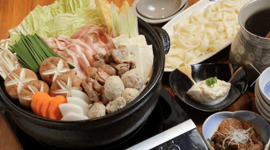 名古屋名物「赤みそ」や「手羽先だし」を使ったオリジナルスープに、シメのきしめんなど、名古屋ならではの食材を盛り込んだここでしか味わえないちゃんこ鍋です。