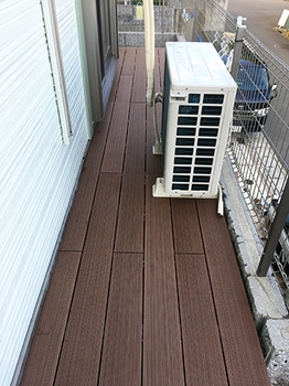 垂水区にある個人邸のベランダリフォーム工事があり、弊社の再生木材エス・ウッドがデッキ材として採用されました。耐久性、耐候性、簡易的なQCS(クイック・クッション・スクリュー)工法が評価されました。