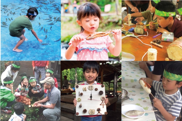 標高1,100mの高原の爽やかな空気の中で、水の中を元気に泳ぐ魚を手で捕まえる「ニジマスのつかみどり」、木工クラフト、アウトドアクッキングなどが楽しめる「森の自然学校」など普段は体験できないことを通して、子どもの心に新鮮な感動を呼び起こします。
