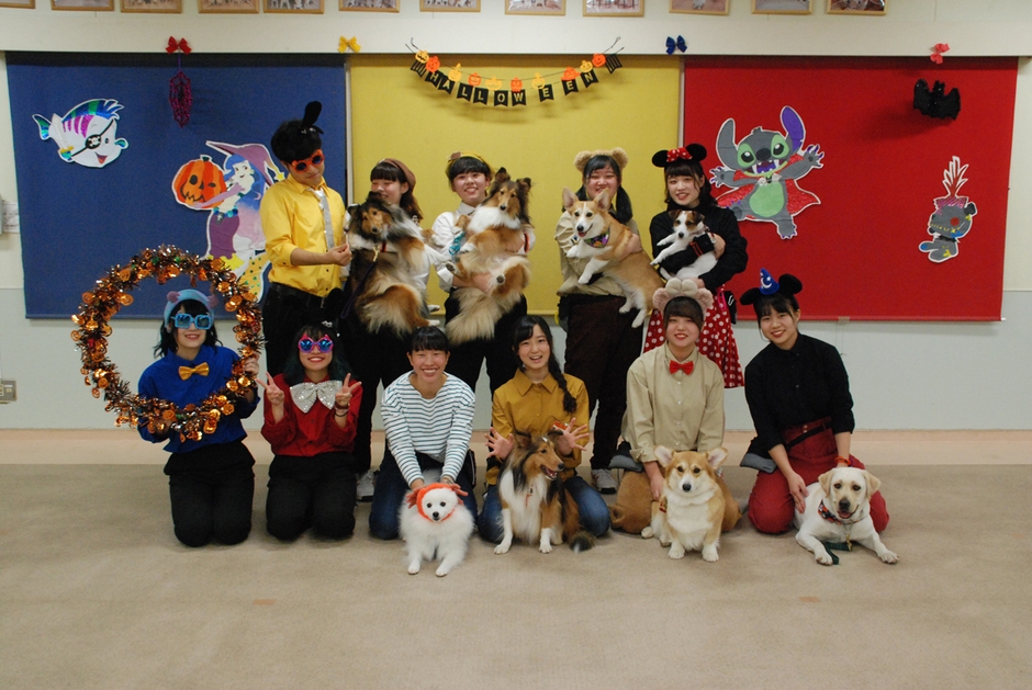 学内ではドッグダンスや建築模型の展示、動物看護師体験など、各学科の日ごろの学習成果が感じられる展示と催しがありました。品種改良した珍しいザリガニの展示があったり、学内猫のポストカードの販売ブースを出している学生もおり、専門性も感じられました。