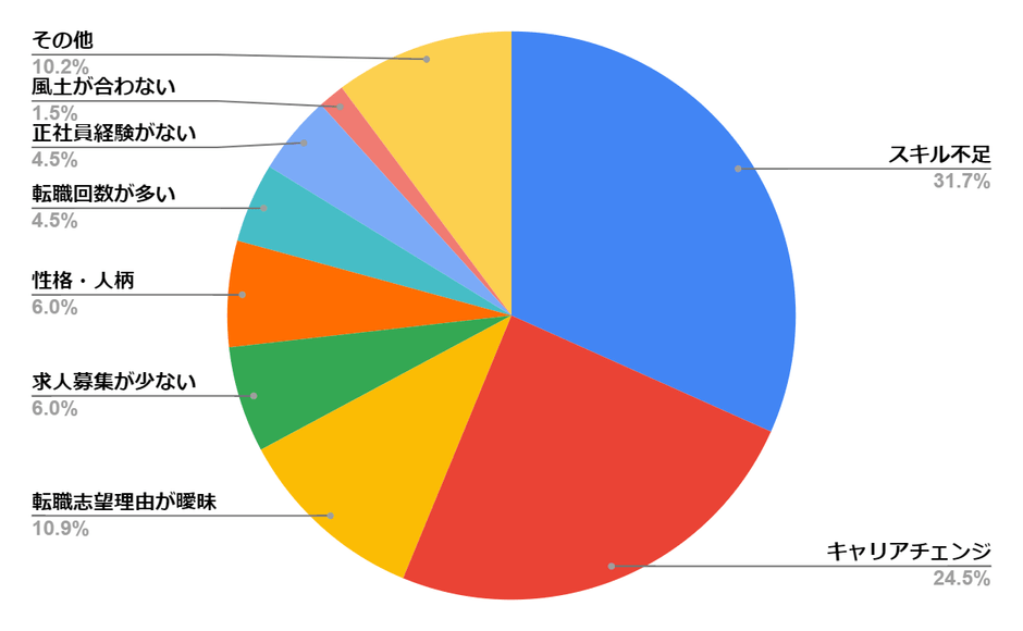 「なぜ面接に通過しなかったのか」の理由の内訳は以下の通りとなっています。