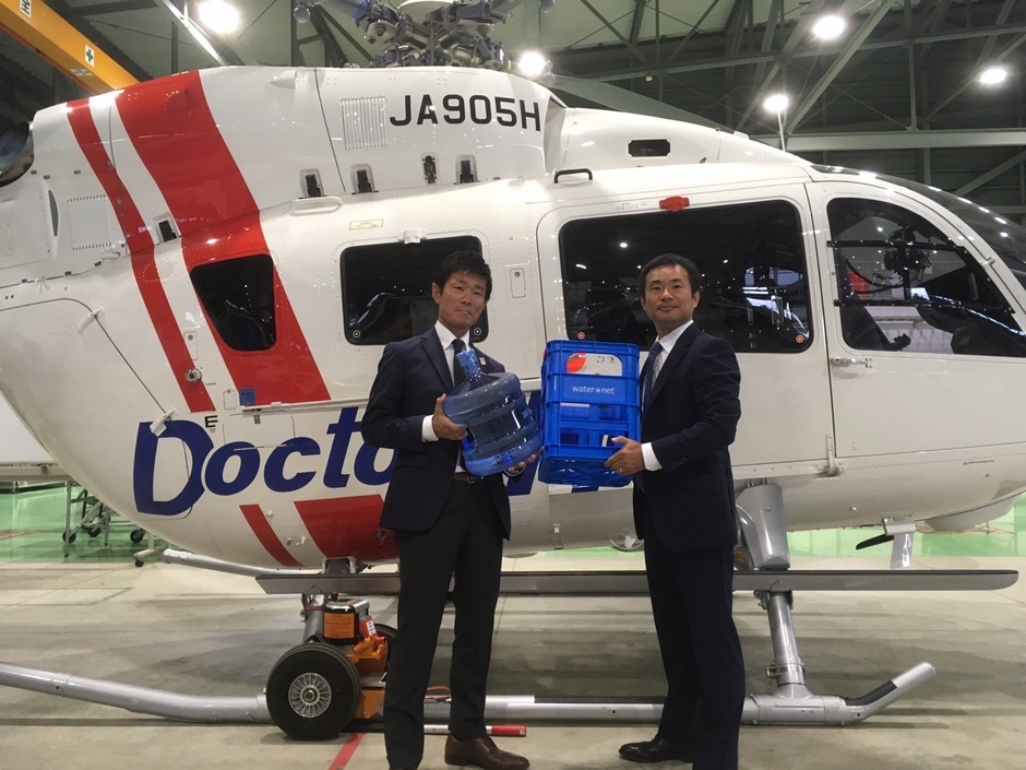当社はこれまでも気象災害や地震・火山災害が発生した際、被災地の代理店や自治体、関連団体と連携して当社の飲料水を提供してきました。これまではすべて陸路を使った支援活動となっていましたが、2016年4月に発生した熊本地震の際、道路が寸断され陸路では物資を届けることができないエリアが存在しているというニュースを見て、改めて災害弱者を作ってはいけないという思いから、空路を利用する災害支援活動にご協力いただける企業はないかと模索して参りました。