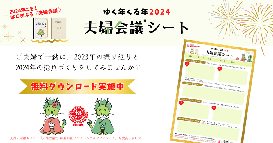 ぜひ、今回のゆく年くる年2024「夫婦会議シート」無料ダウンロードキャンペーンを通して、『夫婦会議』をはじめてみてください!