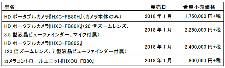 2/3型3CMOSイメージセンサー搭載の3G伝送対応HDポータブルカメラ『HXC-FB80』と4Kアップコンバート出力にも対応したカメラコントロールユニット『HXCU-FB80』を発売