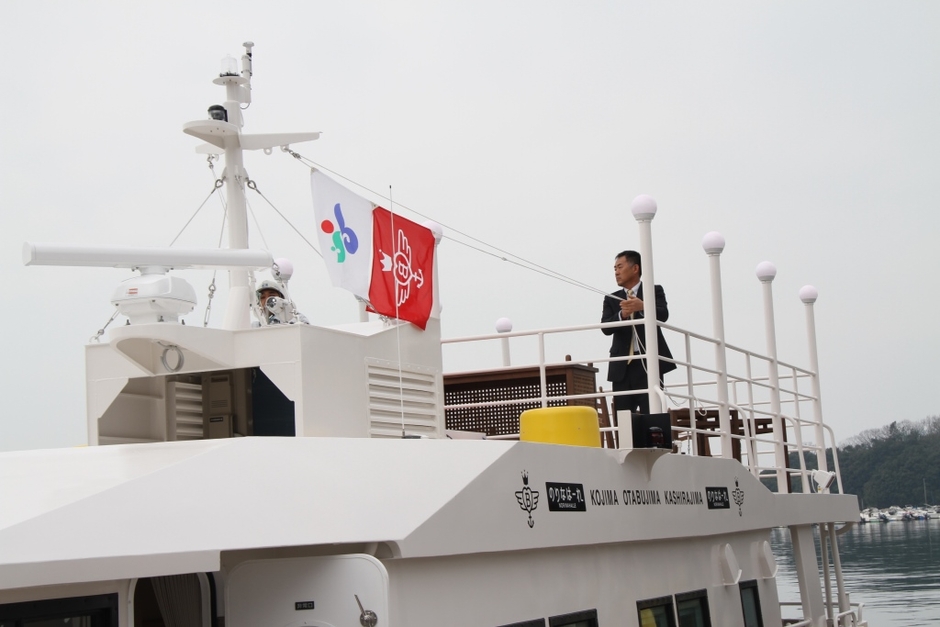 今回竣工した「のりなはーれ(NORINAHALLE)」は、備前市の日生港を起点に鴻島・大多府島・頭島を結ぶ定期船として運航されます。デザイン監修は株式会社ドーンデザイン研究所の水戸岡鋭治氏によるもので、定期船としてだけでなく観光船、レストラン船としても活躍できるよう、木材を基調とした温かみのある内装デザイン、2階の遊歩甲板にはウッドデッキを施すなど、幅広い世代に受け入れられるデザインとなっています。