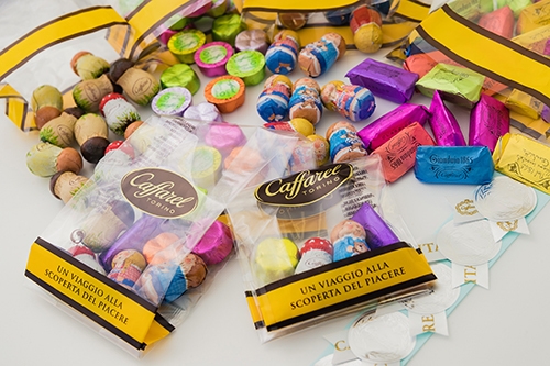 カファレルの商品は、なめらかな口どけと最高級の味わいはもちろんのこと、ひと目見ただけで心躍るようなキュートなデザインとカラフルな色使いのホイルデザインが特徴で、贈り物としても人気です。