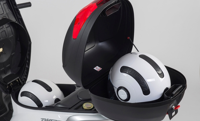 ハンドルグリップまでをカバーする大型のロングスクリーンを装備。シート下にはストレージを有し、標準装備のトップケースと合わせて2つのジェットタイプヘルメットを収納できます。ユーティリティハンガーやロック付きグローブボックスも装備し、日常の使い勝手も良好です。
