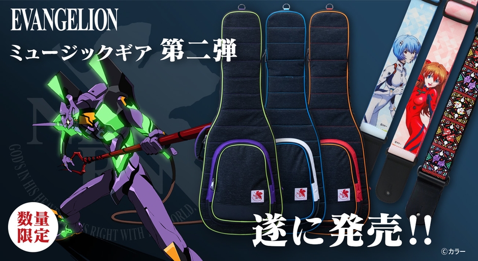 2018楽器フェアで発表されたエヴァンゲリオンのキャラクターがプリントされたギターストラップ2種類と、エヴァンゲリオンのオリジナルモノグラムデザインのギターストラップ1種類が発売。