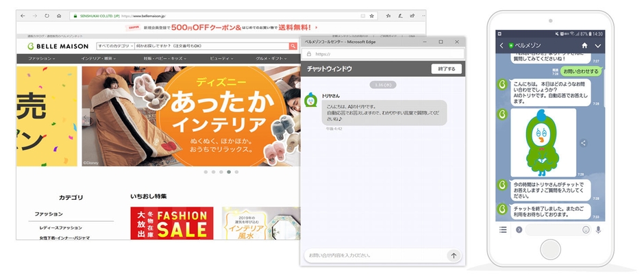 千趣会は、ベルメゾンコールセンターでの各種お問い合わせへの受付について、チャットサービスのリニューアルを実施。従来の電話、メール、Web有人チャット対応に加え、M-TalkとAIを連携し、AIチャットボットでの自動応答による運用と、LINE連携によるサービスを開始しました。