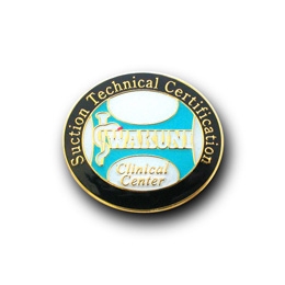中央に独立行政法人国立病院機構岩国医療センター様のロゴを配した「認定証」は、その周囲を黒い円で囲み、さらに金色で吸引技術認定を表す「Suction Technical Certification」の文字が浮かんで見える仕様になっています。20mmという小さなピンズながら、「認定証」としての安定感や品質などご担当者様から「期待通り」とのご感想を頂ける仕上がりになりました。医療現場で働かれる方々にとって「認定証」は大きなステイタスであると同時に、実力を周囲に示すことのできるアイテムとして活躍することでしょう。