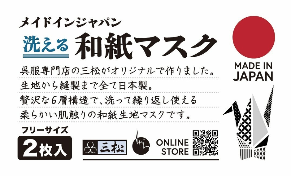 和のファッション企業 三松、洗って繰り返し使える メイドインジャパンの「和紙マスク」の販売を決定!!