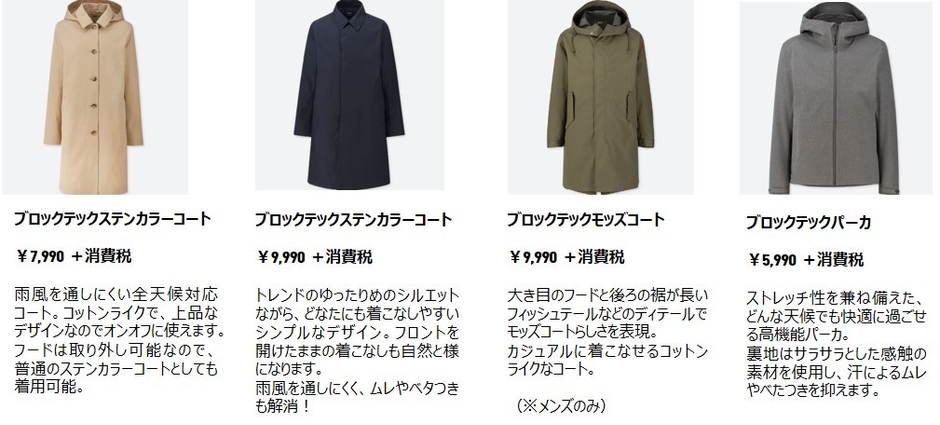製品情報:急な雨風も防げてスタイリッシュに着られるアウター「ブロックテック」シリーズ