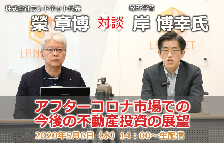 「人生100年時代」を見据えながら、不動産の資産運用コンサルティングを行う総合不動産商社の株式会社ランドネット(本社:東京都豊島区/代表取締役社長:榮 章博)は、4月18日(土)に開催された、当社の不動産運用顧問(Private Realtor)アドバイザーである経済学者の岸 博幸氏との特別合同セミナーの反響を受け、来たる5月6日(水)に「アフターコロナ市場での今後の不動産投資の展望」と題して緊急対談を開催致します。
