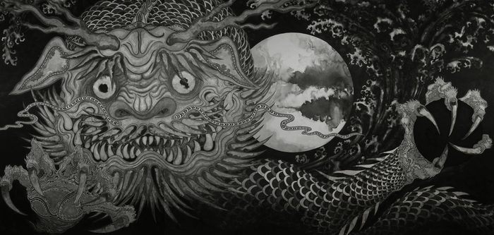 2017年 墨、ペン、吉祥麻紙 Japanese ink, pen on Japanese paper 230x480cm