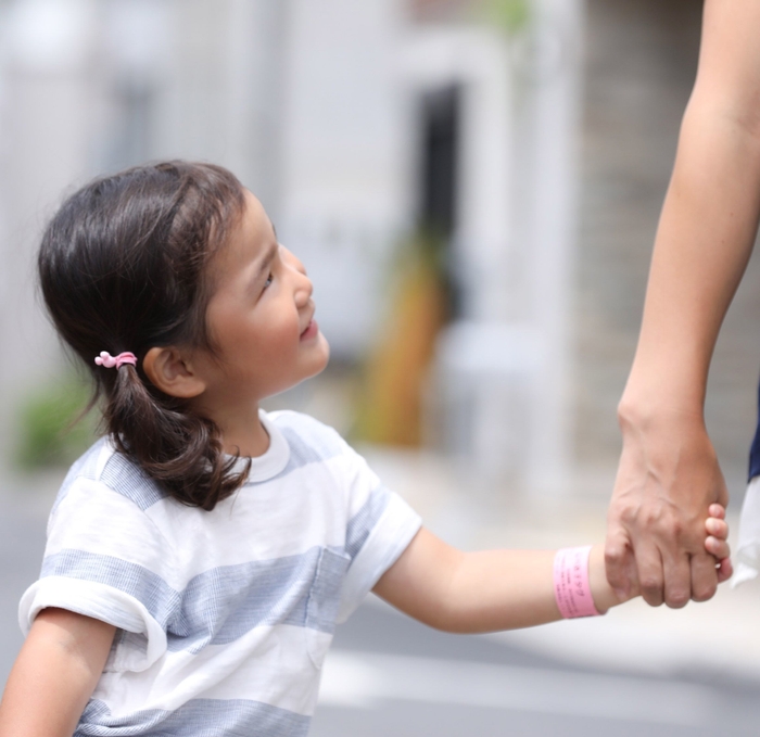 近年、一部テーマパークで迷子放送を行わないという施策がとられております。非現実の世界を演出する施設で現実的な迷子放送は控えたいというのが最大の理由でありますが、一方、名前や年齢、服装の特徴、場合によっては住居地域まで放送する方式に懸念を抱く保護者に対する配慮もあると感じております。個人を特定する情報を外部に知らせることなく迷子の発見ができれば、迷子になってから放送を通じて親御さんと再会するまでの多くの時間、親御さん、お子様双方の不安を少しでも軽減できればという想いから、1分1秒でも早くお子様と再会できる手段として『イベントバンド』の商品化を実現いたしました。